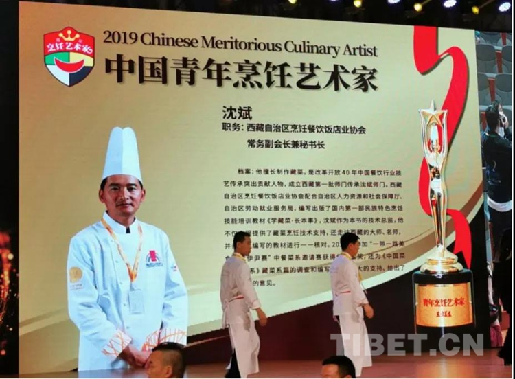 圖為在2019烹飪藝術家年會上,沈斌被授予“中國青年烹飪藝術家”稱號。西藏烹飪餐飲飯店業(yè)協(xié)會供圖