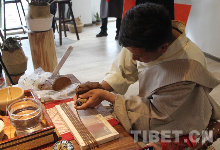 圖為活動現(xiàn)場,藏香匠人演示傳統(tǒng)藏香制作技藝。