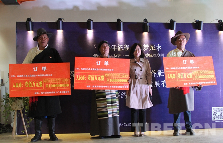 圖為三家尼木藏香專業(yè)合作社各從風馬兒文創(chuàng)獲得100萬元訂單。