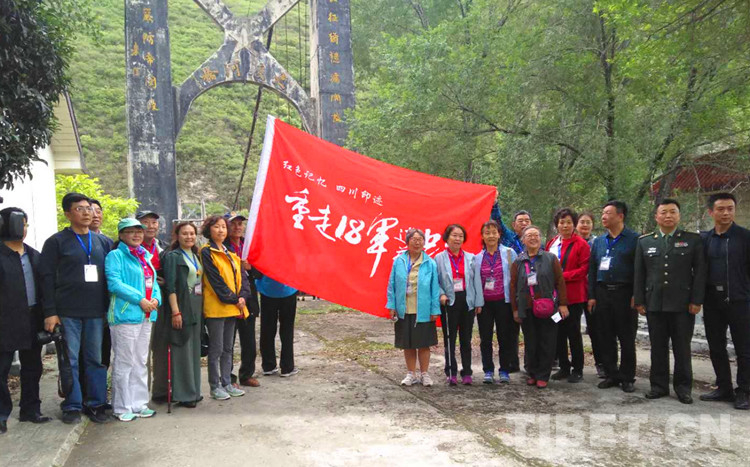 圖為十八軍老戰(zhàn)士及十八軍后代在大渡河橋附近合影。