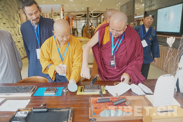 圖為達扎活佛體驗印刷術。