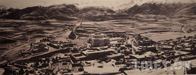 1935年紅軍長征途經(jīng)甘孜,隨后建立了甘孜縣的波巴政府和白利、絨壩岔、孔薩區(qū)的波巴政府。圖為當時的甘孜縣城。