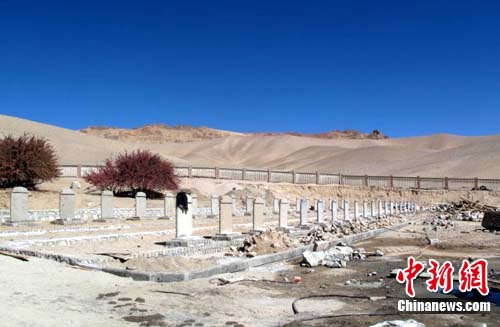 圖為西藏阿里地區(qū)首府獅泉河鎮(zhèn)的烈士陵園,先遣連烈士大多長眠于此。圖片來源:中國新聞網(wǎng)