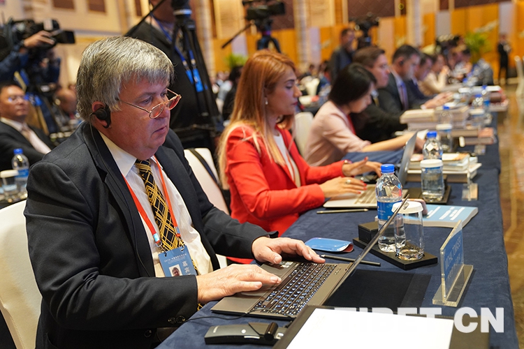 圖為與會外國專家學(xué)者致辭 攝影:索朗加措