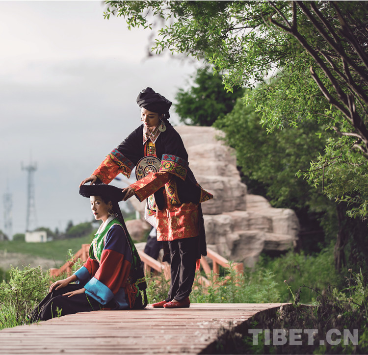 圖為甘南藏族自治州農(nóng)區(qū)藏族服飾