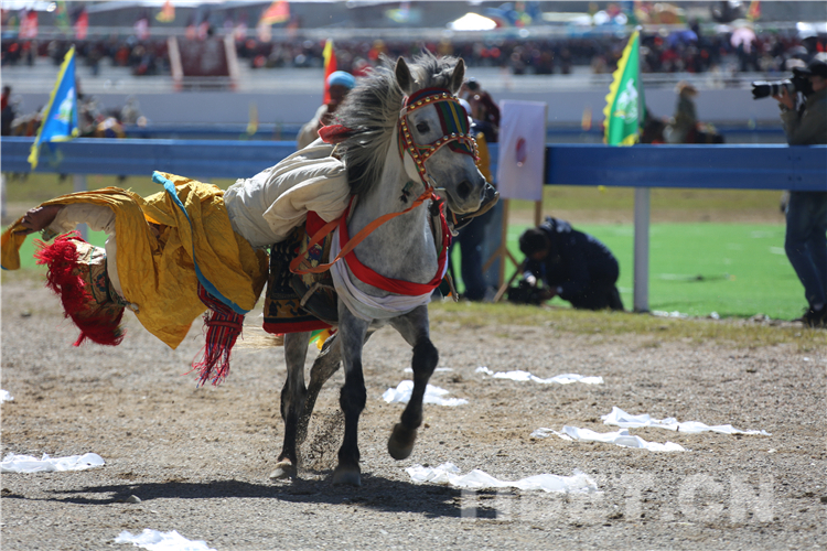 圖為2019“羌塘恰青格薩爾賽馬藝術(shù)節(jié)”開(kāi)幕式上的馬術(shù)表演 攝影:王淑