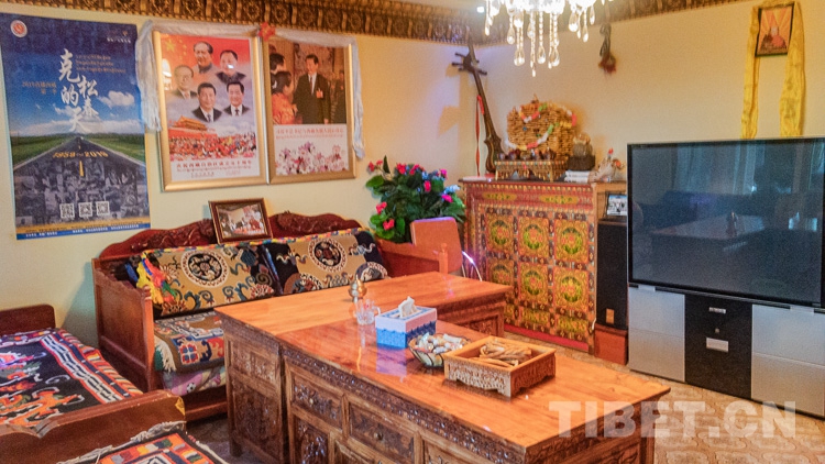 農(nóng)忙的時節(jié),達(dá)瓦坐在自家裝修精致、設(shè)施完善的二層小樓里,卻顯得如此悠閑。自家的8畝農(nóng)田已經(jīng)租了出去,租金也僅僅是收取一些制作糌粑的原料——青稞。今年58歲的達(dá)瓦卸下了身上的擔(dān)子,干起了自己熱愛的事情,愛好唱歌跳舞的他在村子里組建了一個民間藝術(shù)團(tuán),農(nóng)閑的時候唱唱歌、跳跳舞,豐富一下生活。2019年,達(dá)瓦帶著他的團(tuán)隊走上了西藏山南雅礱文化節(jié)的開幕式,把自己的愛好帶上了更大的舞臺。(中國西藏網(wǎng) 記者/趙耀)