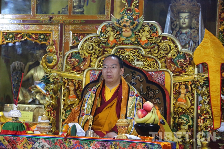 圖為十一世班禪在帕巴寺大經(jīng)堂法座上 攝影:王淑