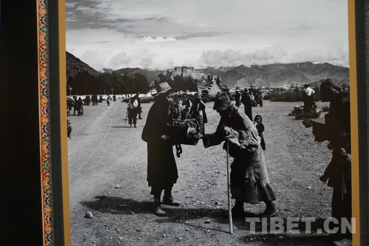 圖為舊西藏隨處可見的乞丐,乞丐身后的建筑為桑珠孜宗堡。陳宗烈 攝