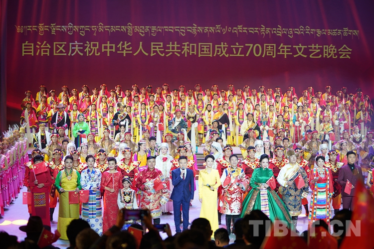 中國西藏網(wǎng)訊 歡歌起舞迎盛世,為表達(dá)西藏各族人民群眾對共產(chǎn)黨的無限熱愛和對祖國母親的深深祝福,9月28日晚,由西藏自治區(qū)黨委宣傳部、西藏自治區(qū)文化廳主辦、西藏自治區(qū)歌舞團(tuán)承辦的西藏自治區(qū)慶祝中華人民共和國成立70周年文藝晚會在藏戲藝術(shù)中心舉行。