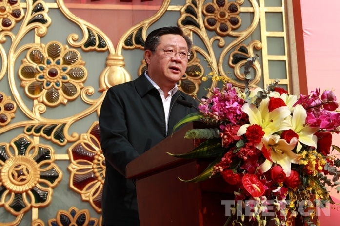 圖為國家民委副主任郭衛(wèi)平為開幕式致辭