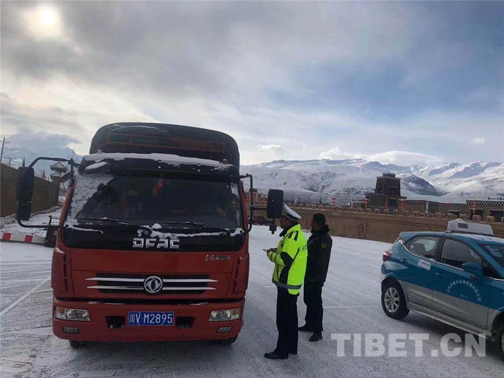 圖為甘孜縣公安交警大隊對來往車輛進行檢查