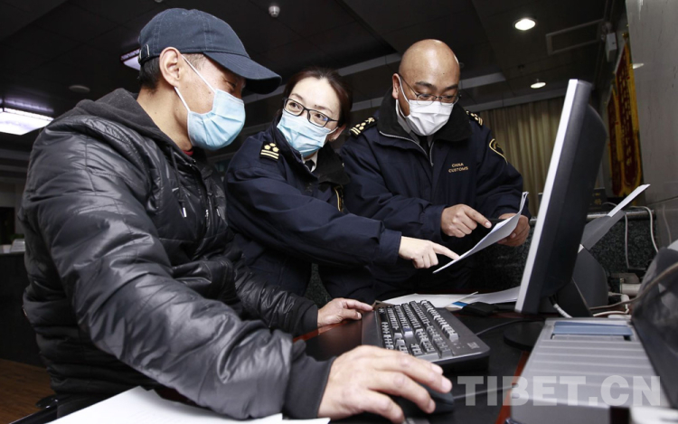 圖為拉薩海關(guān)關(guān)員實(shí)地指導(dǎo)辦理相關(guān)手續(xù) 圖片由拉薩海關(guān)提供