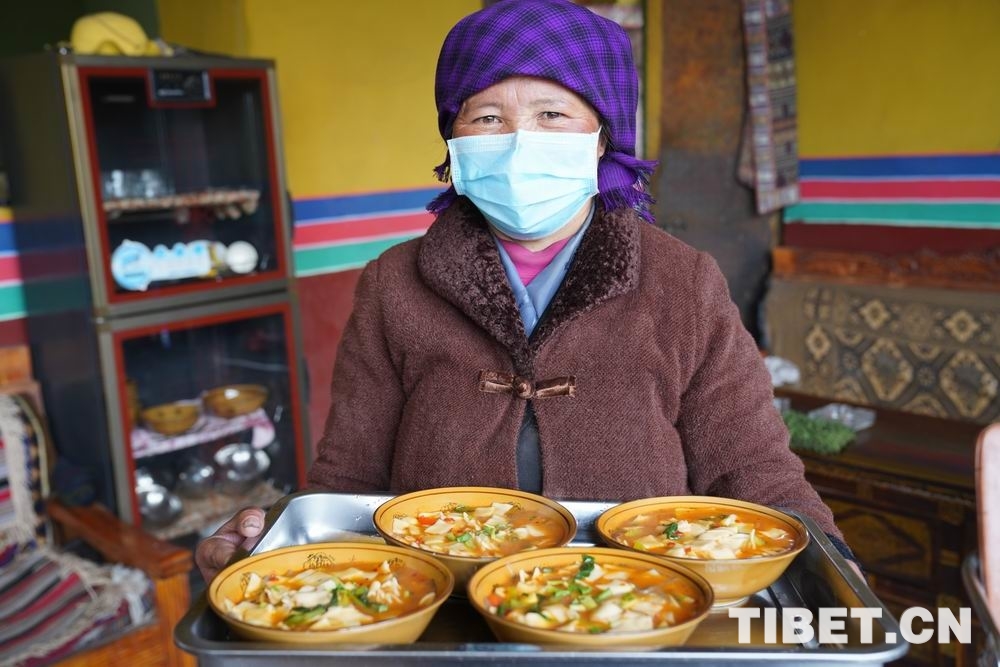 “好嘞,請(qǐng)稍等會(huì)兒,馬上就上菜?!闭碉堻c(diǎn),嘎瑪旺堆小茶館里滿(mǎn)是食客,點(diǎn)菜的聲音此起彼伏。食客們?cè)谶@里聊著生活與工作中的瑣事,在忙碌的時(shí)光中,尋求一份歇息。嘎瑪旺堆和他的妻子央金看著這茶館熱鬧的場(chǎng)景,心里不由得回想起曾經(jīng)的那段苦日子。他們那時(shí)時(shí)常為生活的溫飽問(wèn)題而發(fā)愁。