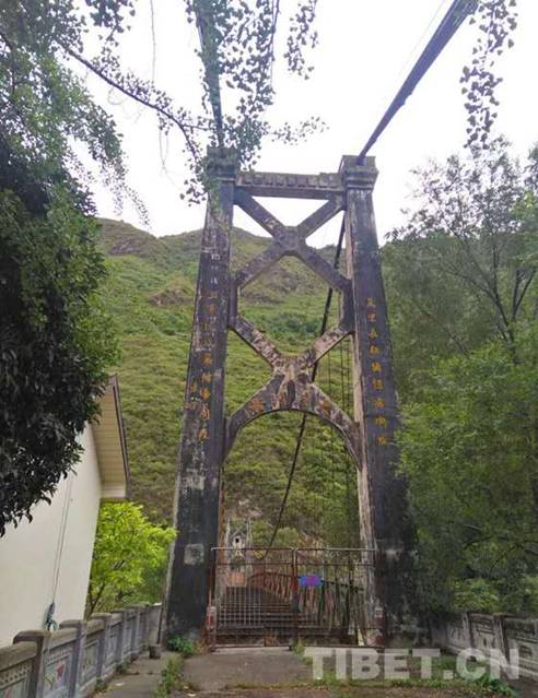 母親眺望遐思的一剎那,汽車已到大渡河橋前,車停了下來??匆姌蝾^上方環(huán)形鐵架上赫然鐫刻著四個(gè)蒼勁有力的大字“大渡河橋”,大字正上方釘著一個(gè)鮮艷的巨型“五角星”。母親猛然情急地問:“怎么這座橋不是瀘定橋嗎?怎么與我們課本上說的不一樣?”年輕的司機(jī)爽朗地笑著說:“這座橋位于距離瀘定橋上游500米處,1950年,進(jìn)軍西藏的十八軍,在‘一面進(jìn)軍,一面建設(shè)’的號(hào)召下,為跨越大渡河天塹,又在水流湍急的大渡河上修建了第一座公路大橋——大渡河橋。大橋于1951年6月建成通車,西南軍區(qū)軍政委員會(huì)主席劉伯承揮筆寫下了‘大渡河橋’幾個(gè)遒勁有力的大字?!彼緳C(jī)一邊招呼著母親下車,一邊接著又說道:“你瞧,橋頭楹聯(lián)是朱德總司令題寫的:‘萬里長征猶記瀘關(guān)險(xiǎn),三軍遠(yuǎn)戍嚴(yán)防帝國侵?!?/p>