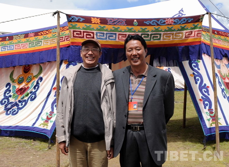 這是唐召明(左)與時(shí)任那曲縣縣長扎南(右)在那曲賽馬會(huì)的帳篷前合影留念(唐召明提供,2009年8月12日攝)
