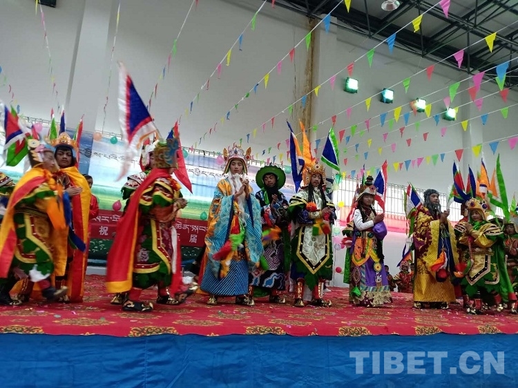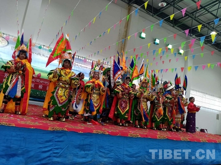 圖為學(xué)生們演格薩爾王藏戲