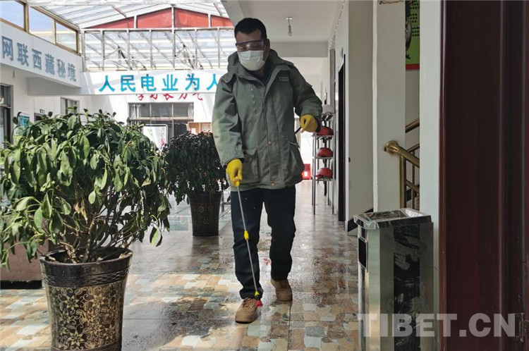 圖為嚴(yán)鋒為項(xiàng)目部各辦公住宿場所進(jìn)行消毒