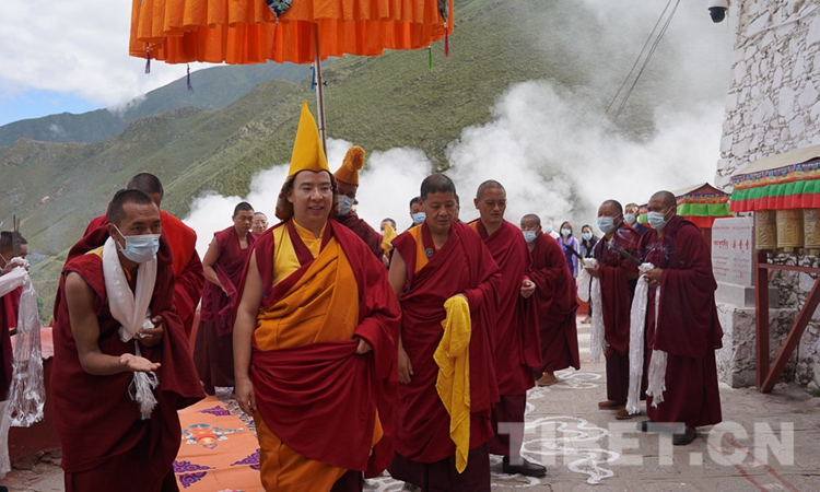 圖為8月4日,堆龍德慶區(qū)桑普寺僧眾列隊(duì)迎接十一世班禪的到來(lái) 攝影:王淑