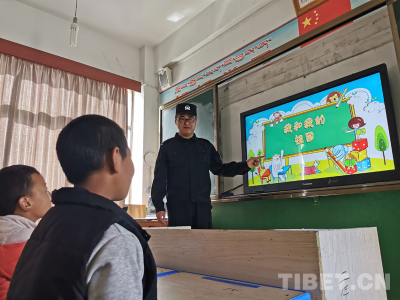 眼鏡老師來了,他上次講的未成年人保護(hù)法講得特別全面,他專業(yè)的知識(shí)和幽默的語言,使我學(xué)到了好多知識(shí),我特別喜歡聽他講課……”鄉(xiāng)小學(xué)五年級(jí)學(xué)生小卓瑪說。今天周四,恰逢教師節(jié),按照慣例,牟鑫會(huì)來上課。今天,他為同學(xué)帶來的主題是愛國(guó)主義情懷,在授課的過程中,他用通俗易懂的言語講述黃繼光、邱少云等革命先輩們不惜赴湯蹈火、英勇就義的偉大壯舉,讓愛國(guó)主義精神在廣大學(xué)生的心中扎根,培養(yǎng)小學(xué)生的愛國(guó)之情、砥礪強(qiáng)國(guó)之志、實(shí)踐報(bào)國(guó)之行。