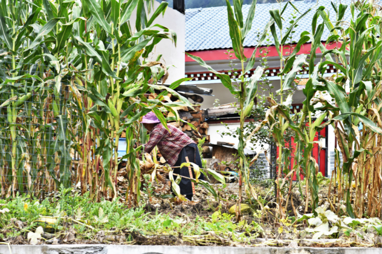圖為西藏自治區(qū)林芝市察隅縣下察隅鎮(zhèn)卡地村村民在玉米地里忙碌 攝影:王媛媛