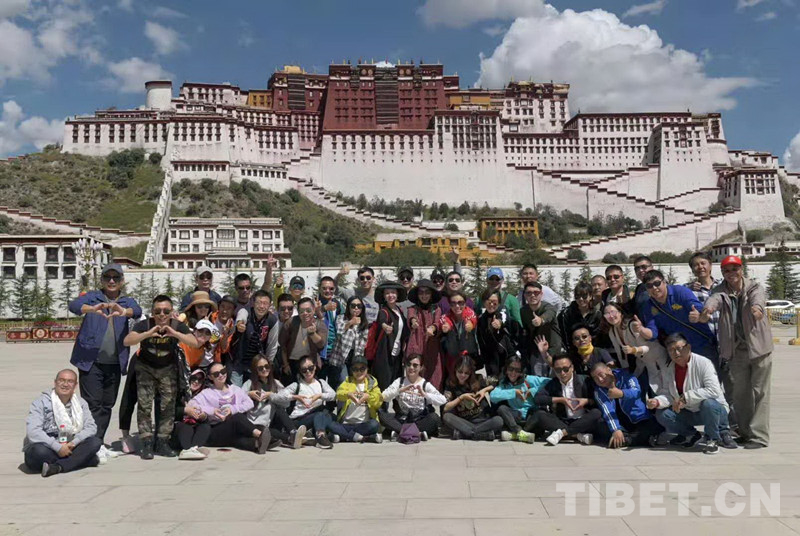 這是中國評劇院藝術家在拉薩演出結(jié)束后,來到布達拉宮前合影留念(唐召明提供,2018年9月19日攝)
