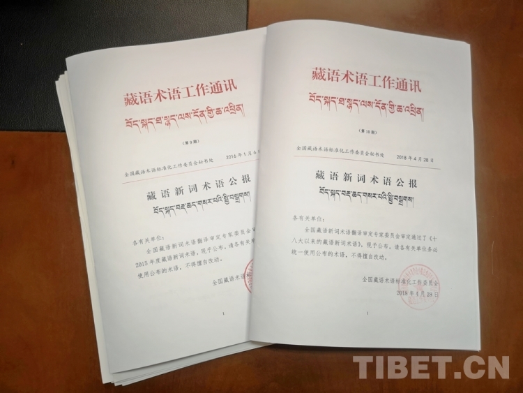 2014年,全國(guó)藏語術(shù)語標(biāo)準(zhǔn)化工作指導(dǎo)委員會(huì)成立,成員單位包括國(guó)家5個(gè)部委、西藏和涉藏州縣共16家單位。同年,藏語領(lǐng)域的第一個(gè)全國(guó)性專家組織——全國(guó)藏語新詞術(shù)語翻譯審定專家委員會(huì)成立,共有41名藏語領(lǐng)域的專家學(xué)者受聘擔(dān)任委員,負(fù)責(zé)藏語術(shù)語的翻譯審定工作。當(dāng)年還發(fā)布了《全國(guó)藏語術(shù)語標(biāo)準(zhǔn)化工作委員會(huì)新詞術(shù)語藏文翻譯規(guī)范和推廣應(yīng)用辦法》,形成了藏語新詞術(shù)語的國(guó)家級(jí)標(biāo)準(zhǔn),使之后的藏語新詞術(shù)語從搜集整理、翻譯審定到推廣應(yīng)用都做到有章可循,積極推進(jìn)全國(guó)藏語新詞術(shù)語的規(guī)范和統(tǒng)一。