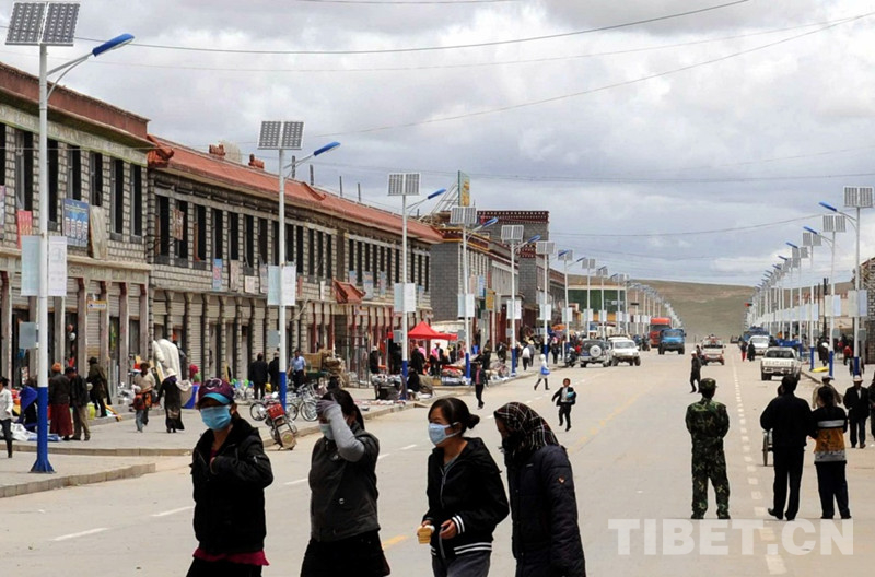 圖為藏北班戈縣城路兩邊新安裝的太陽(yáng)能路燈 唐召明2009年攝