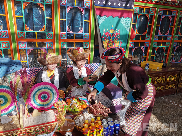 在西嘎拉村普瓊家,一進門,普瓊的女兒就為新到的“貴客”獻上潔白的哈達,并祝福他們藏歷新年快樂。