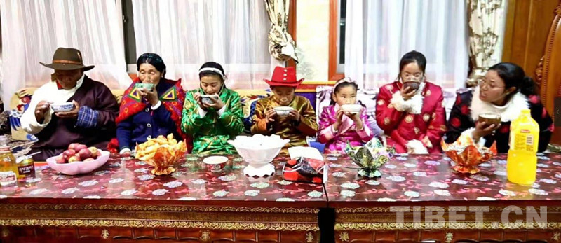 2月10日晚,藏歷新年“古突”夜,在西藏自治區(qū)阿里地區(qū)獅群河鎮(zhèn)康樂新居易地扶貧搬遷點居住的索南旺久一家,換上了節(jié)日的盛裝,準備好傳統(tǒng)美食“古突”,在自家寬敞明亮的房子內(nèi),共慶傳統(tǒng)佳節(jié)的到來。索南旺久說,因為有黨的好政策,他們一家搬到了寬敞明亮的大房子,現(xiàn)在日子越過越紅火,年味也就更濃了。