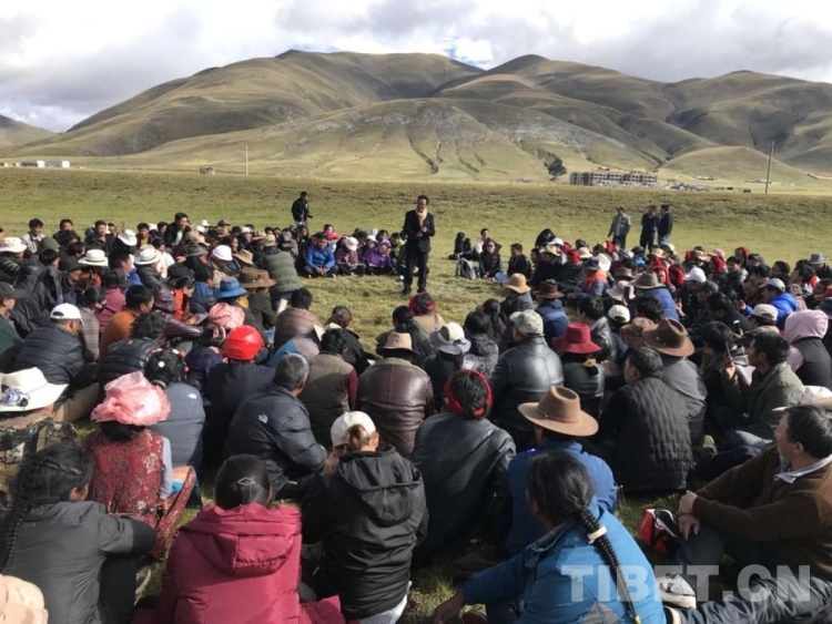 圖為阿里地區(qū)札達(dá)縣達(dá)巴鄉(xiāng)農(nóng)牧民宣講員扎西金卓向廣大農(nóng)牧民群眾宣講黨和國(guó)家好政策