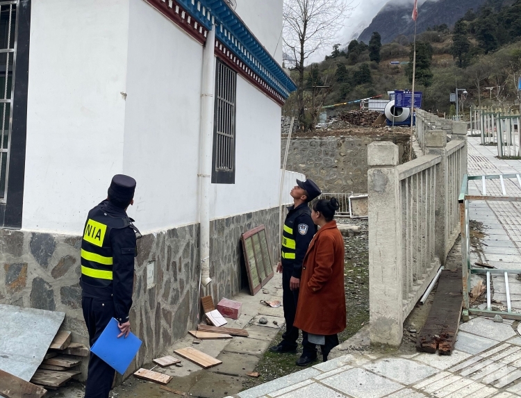 圖為西藏山南邊境管理支隊隆子扎日邊境派出所民警對邊民群眾住宅進(jìn)行震后排查