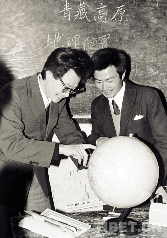 這是時任班戈縣中學校長胡蓉(右)和副校長駱正軍(左)在交流教學經驗。兩人在1980年分別從湖南大學和湖南師范學院畢業(yè)后,來到班戈縣任教(唐召明1987年攝)