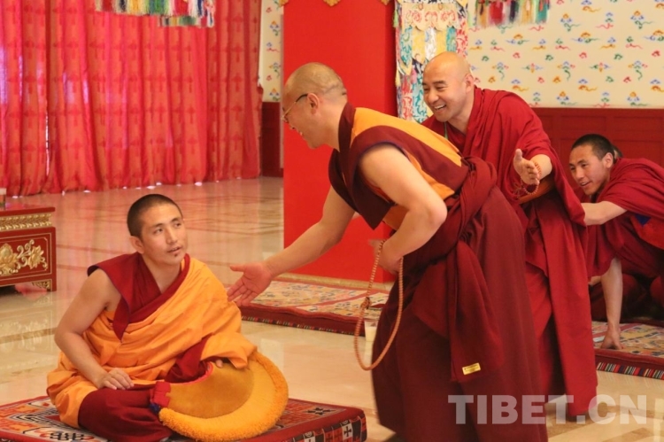 圖為薩迦派辯經(jīng)考試現(xiàn)場(chǎng)