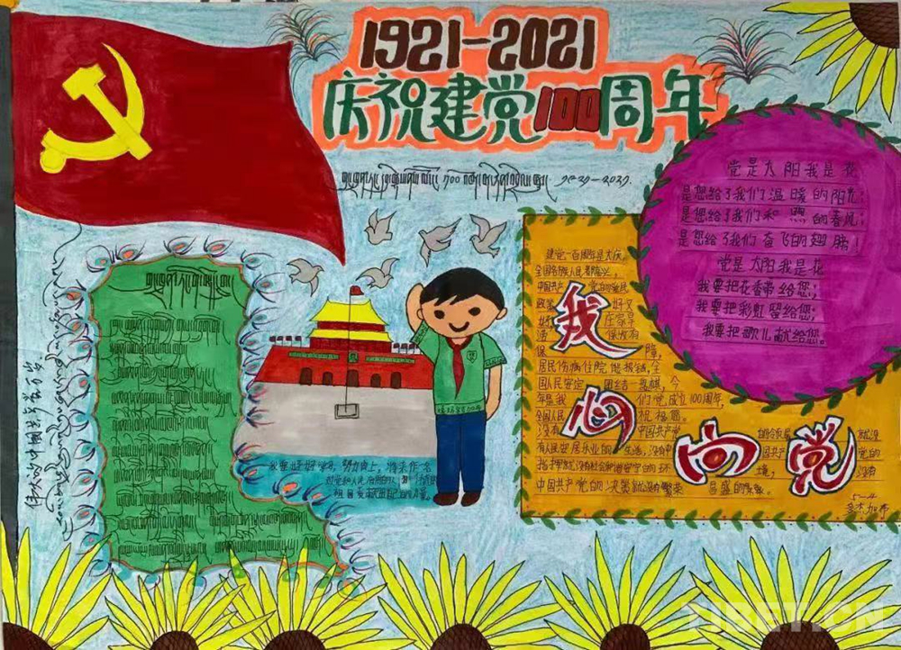 此次展覽是在慶祝中國共產(chǎn)黨成立100周年、西藏和平解放70周年之際,舉辦的一次展示西藏少年精神面貌的少兒手抄報專題展。展覽從今年三月份開始策劃,共展出240幅堆龍德慶區(qū)小學生手抄報。