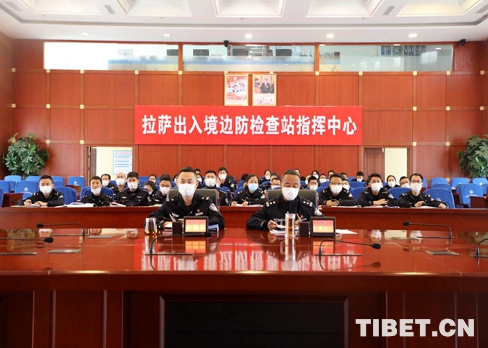 圖為拉薩邊檢站民警們在線觀看《我是十八軍》攝影:高揚
