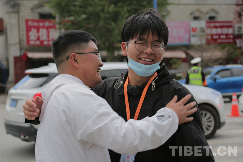 西藏軍區(qū)拉薩八一學校的成尚勇老師在高考的幾天里一直在“陪考”,考試結束后,他和自己的學生一一擁抱告別,滿眼不舍地送自己的學生一個個離開。他說,“我們原地返回,他們展翅高飛。陪了他們三年,以后就沒辦法繼續(xù)陪伴他們成長,心里會有一些不舍。”