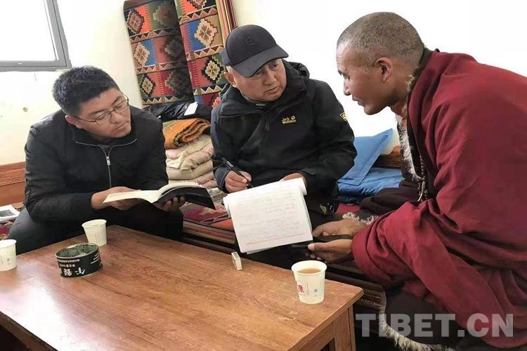 圖為西藏自治區(qū)藏語委辦(編譯局)黨組成員、副主任(副局長)加永曲加和同事調(diào)研新詞術(shù)語相關情況