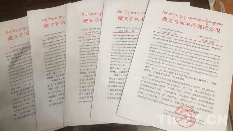 據(jù)介紹,在1987年西藏自治區(qū)藏語文工作委員會辦公室成立初期,成立了西藏自治區(qū)辭書審定領導小組,負責編纂審定漢藏對照行業(yè)詞典;1995年在全國藏語術(shù)語標準化委員會的領導下,西藏自治區(qū)藏語委辦和編譯局組織本單位專家和西藏日報、廣電、教材編譯等部門專家,定期不定期地收集審定出現(xiàn)頻率較高的新詞術(shù)語,并已活頁形式發(fā)布。