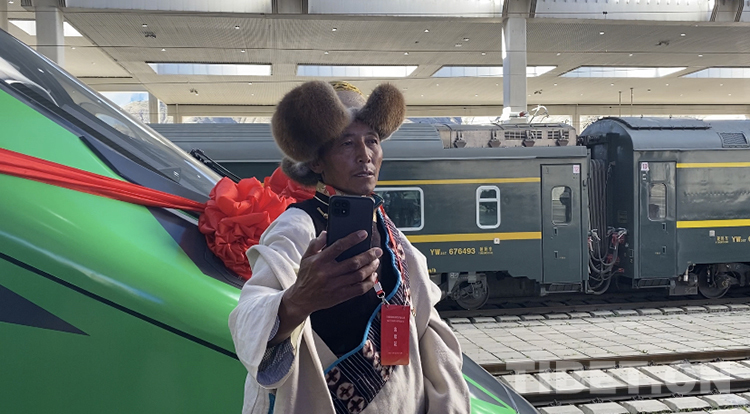 “修建拉林鐵路時,要占用我們的地,我們都特別支持。鐵路施工上,有什么事情,我們都很積極響應(yīng)?,F(xiàn)在,拉林鐵路終于建成通車了,我們都很高興。居委會里,許多人都知道我要來迎接車子,都讓我拍點視頻、照片,回去給他們看看?!?/p>