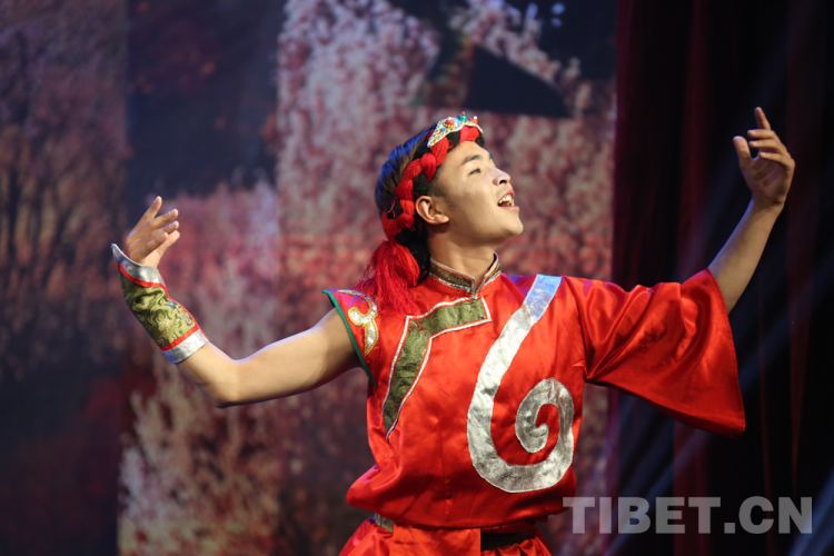 圖為正在演出組歌《共產來了苦變甜了》《我愛金子般的家鄉(xiāng)》《洗衣歌》《西藏人民齊歡暢》攝影:次旦拉姆