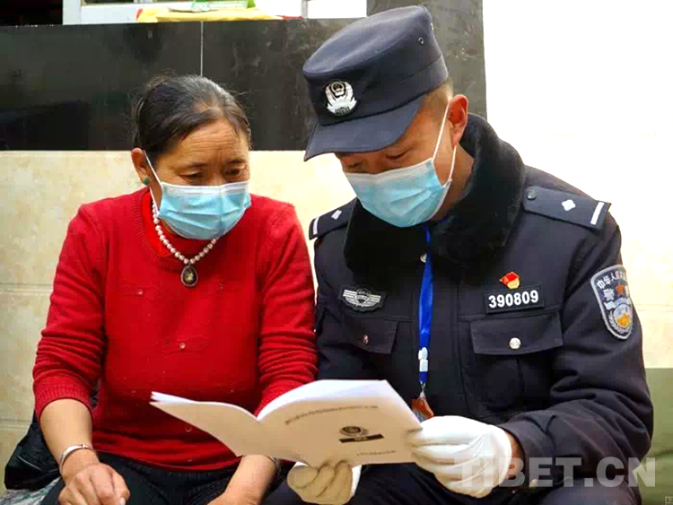 圖為洛桑旦增向轄區(qū)群眾宣傳相關(guān)法律規(guī)定和注意事項