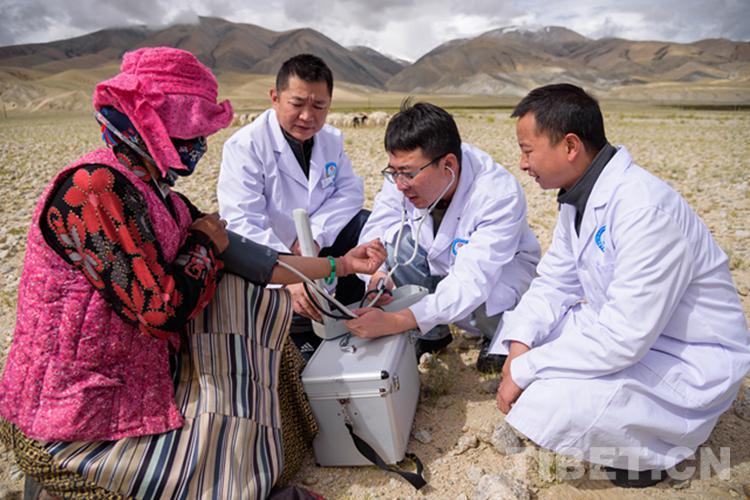 圖為陜西省組團(tuán)式醫(yī)療援藏專(zhuān)家在阿里地區(qū)農(nóng)牧區(qū)義診