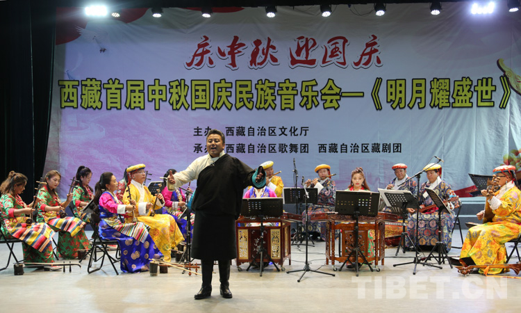 中國(guó)西藏網(wǎng)訊 器樂齊奏、堆諧奔放、歌曲悠揚(yáng)……9月25日晚,一臺(tái)以“享民樂美、敘佳節(jié)情”為主題的民族音樂會(huì)——《明月耀盛世》在西藏自治區(qū)藏劇團(tuán)上演。作為西藏自治區(qū)首屆中秋國(guó)慶民族音樂會(huì),音樂會(huì)營(yíng)造了濃厚喜慶的節(jié)日氛圍。