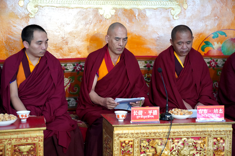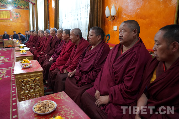 張延清說,今年,在中國共產(chǎn)黨成立100周年,西藏和平解放70周年之際,習近平總書記作為中共中央總書記、國家主席、中央軍委主席到西藏慶祝西藏和平解放,在黨和國家歷史上是第一次,充分體現(xiàn)了以習近平同志為核心的黨中央對邊疆地區(qū)的深情牽掛、對西藏工作的高度重視、對西藏各族干部群眾的深厚感情。7月22日下午,習近平總書記來到建寺600多年的哲蚌寺,受到了全寺僧人最高禮遇的迎接。習近平總書記充分肯定了哲蚌寺在擁護中國共產(chǎn)黨、擁護社會主義制度、維護祖國統(tǒng)一等方面做出的積極貢獻,并關(guān)心詢問僧人身體狀況特別是老年僧人健康問題,在場的僧人都很感動??v觀世界,國家領(lǐng)導人如此高度重視宗教工作、如此深情關(guān)懷宗教界人士,唯有中國、唯有中國共產(chǎn)黨的領(lǐng)導人。知恩、念恩、感恩、報恩是菩提心的根本。各位僧人朋友們一定要按照習近平總書記的指示精神,守法敬業(yè)、愛國愛教、潛心修行、向善為民、利益眾生,真正做慈悲為懷的真佛子。