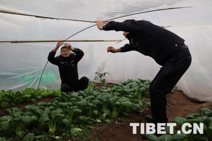 “每到冬天,單位溫室保溫效果就會降低,嚴(yán)重影響了蔬菜種植工作的順利開展,有時候都吃不到新鮮的蔬菜。一次偶然機(jī)會,我了解到這種‘棚中棚’種植技術(shù),保溫效果很好,蔬菜長勢也很好,準(zhǔn)備明年在各基層單位進(jìn)行推廣?!痹摯箨?duì)大隊(duì)長尼瑪說。