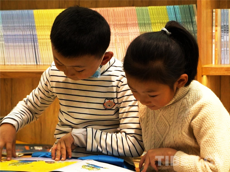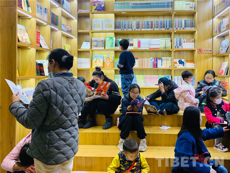 “每到周末,爸爸就會帶我來到書店做作業(yè)、看書,爸爸也會在一旁學習、讀書。我現(xiàn)在上一年級,有很多字不認識,爸爸會教我在閱讀中認識更多的字,讀懂更多的故事,這讓我很快樂?!毙∽x者丹增德慶手捧著書說到。