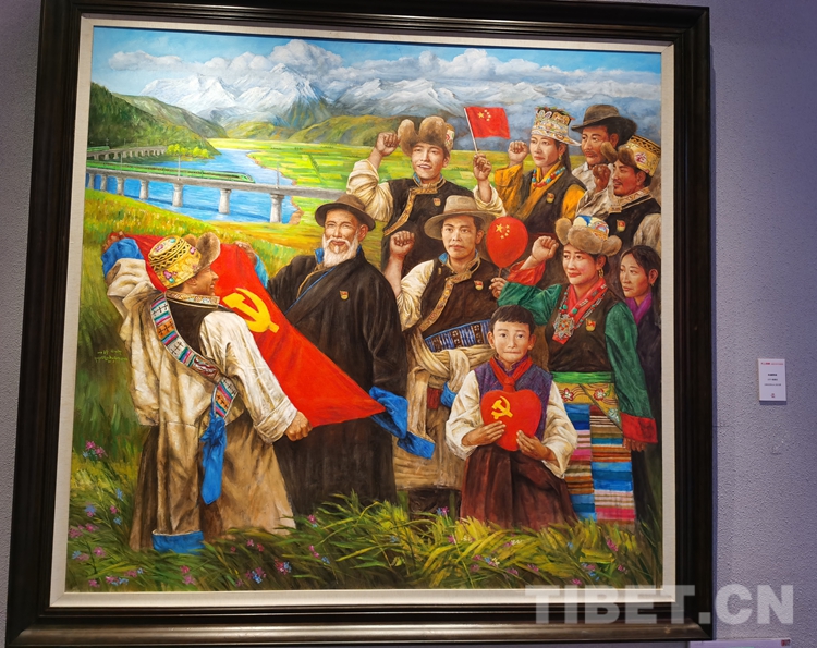 “此次展覽相對齊全,體現(xiàn)了當(dāng)代藝術(shù)家,在總書記文藝系列講話的鼓舞和指引下,以人民為中心關(guān)注生活,關(guān)注西藏。認(rèn)真地用自己的語言、藝術(shù),思維來表現(xiàn)社會主義新西藏方方面面的日新月異和成果,我覺得這樣的成果是實實在在地向中國共產(chǎn)黨成立100周年和西藏和平解放70周年獻(xiàn)禮?!敝嫾翼n書力說。