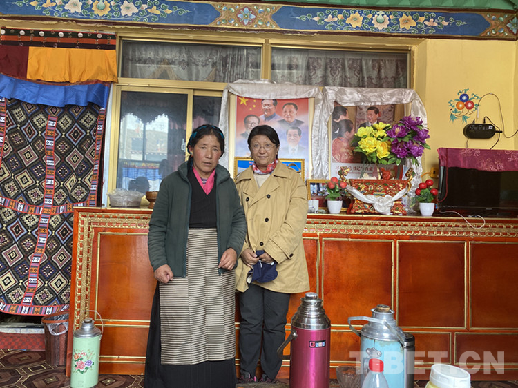 圖為2017年,格桑卓瑪(左)在西藏自治區(qū)那曲地區(qū)(現(xiàn)為那曲市)雙湖縣牧民家中調研