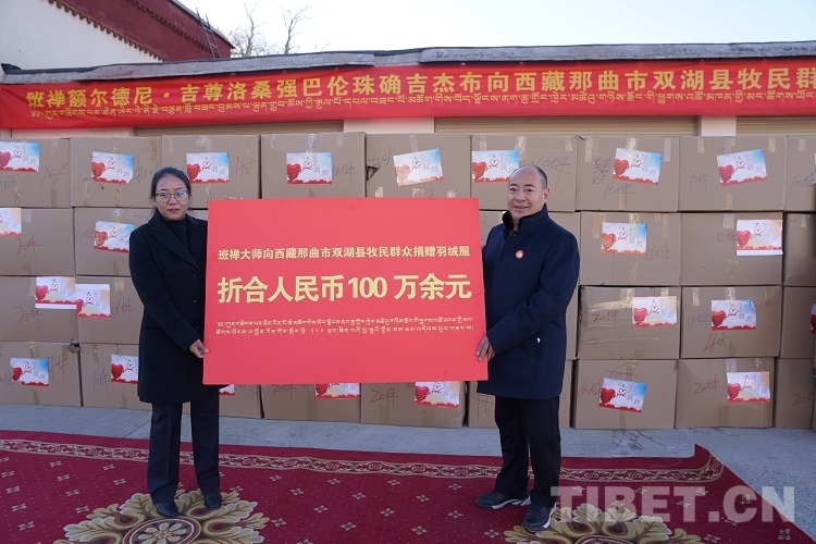 為表達(dá)對基層牧民群眾的體恤和關(guān)心,進(jìn)一步提高基層牧民群眾的獲得感、幸福感,班禪決定以個人名義向雙湖縣從事牧業(yè)生產(chǎn)的牧民捐贈2000件防寒衣物。12月6日,在日喀則市德慶·格桑頗章院內(nèi)舉行了捐贈儀式,將這批防寒衣物交至雙湖縣。